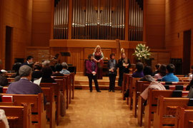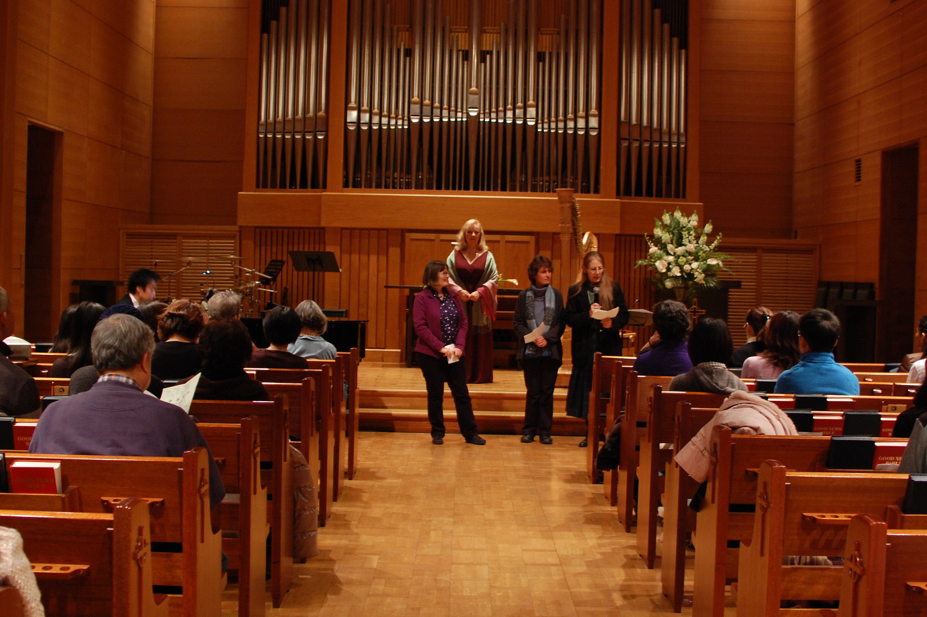 Die Evangelische Kirchengemeinde Kobe-Osaka veranstaltete einen Liederabend mit der bewegenden japanischen Uraufführung von „Shrouded Blossom“, einer Vertonung von Tanka-Gedichten von Überlebenden der Tohoku-Erdbebenkatastrophe durch den japanischen Komponisten Kanji Wakiyama. Voraus gingen Liederzyklen von Schumann und Schubert sowie eine Harfenfantasie von Trenecek.