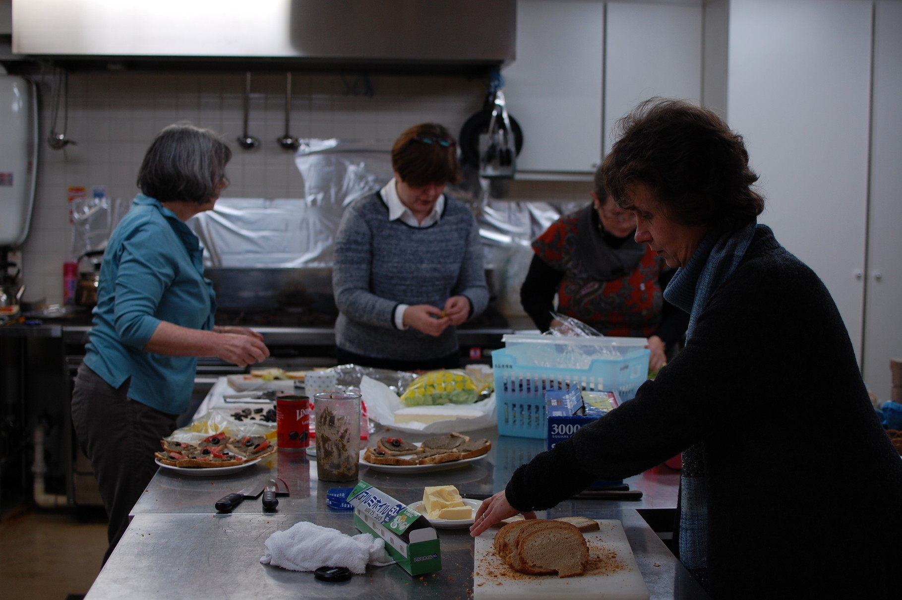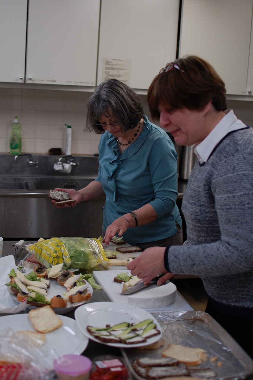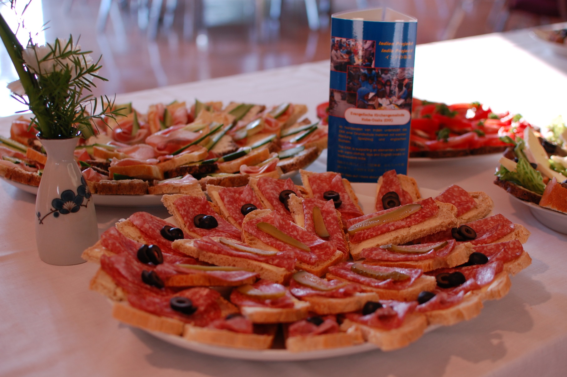 Gemeindemitglieder hatten ein Buffet mit belegten Broten und selbst gebackenen Kuchen vorbereitet.